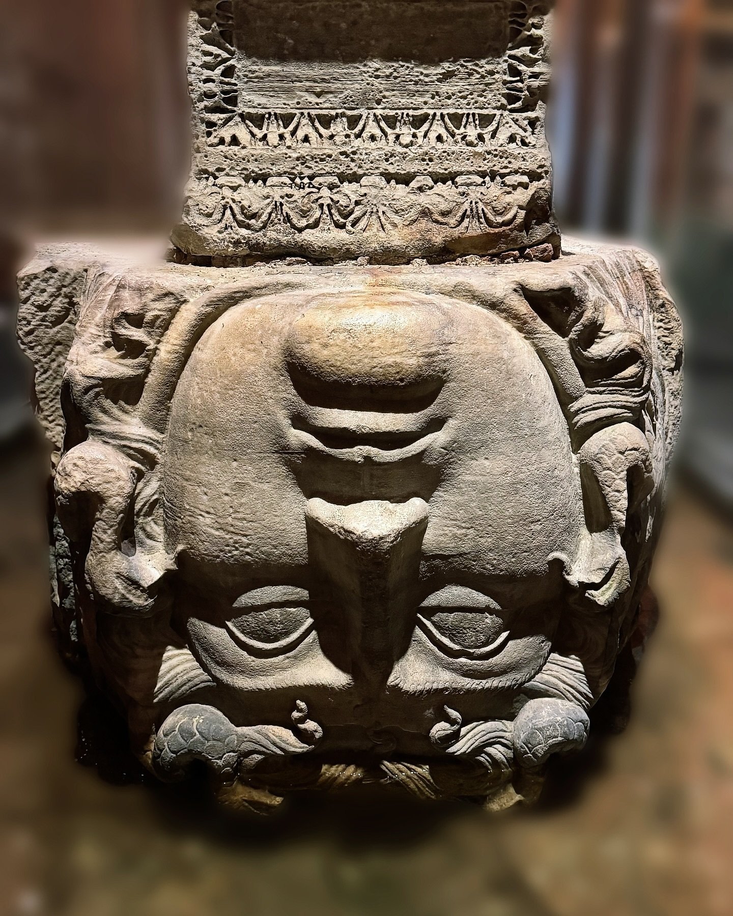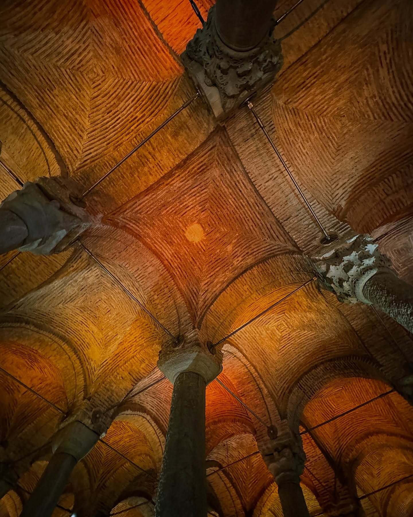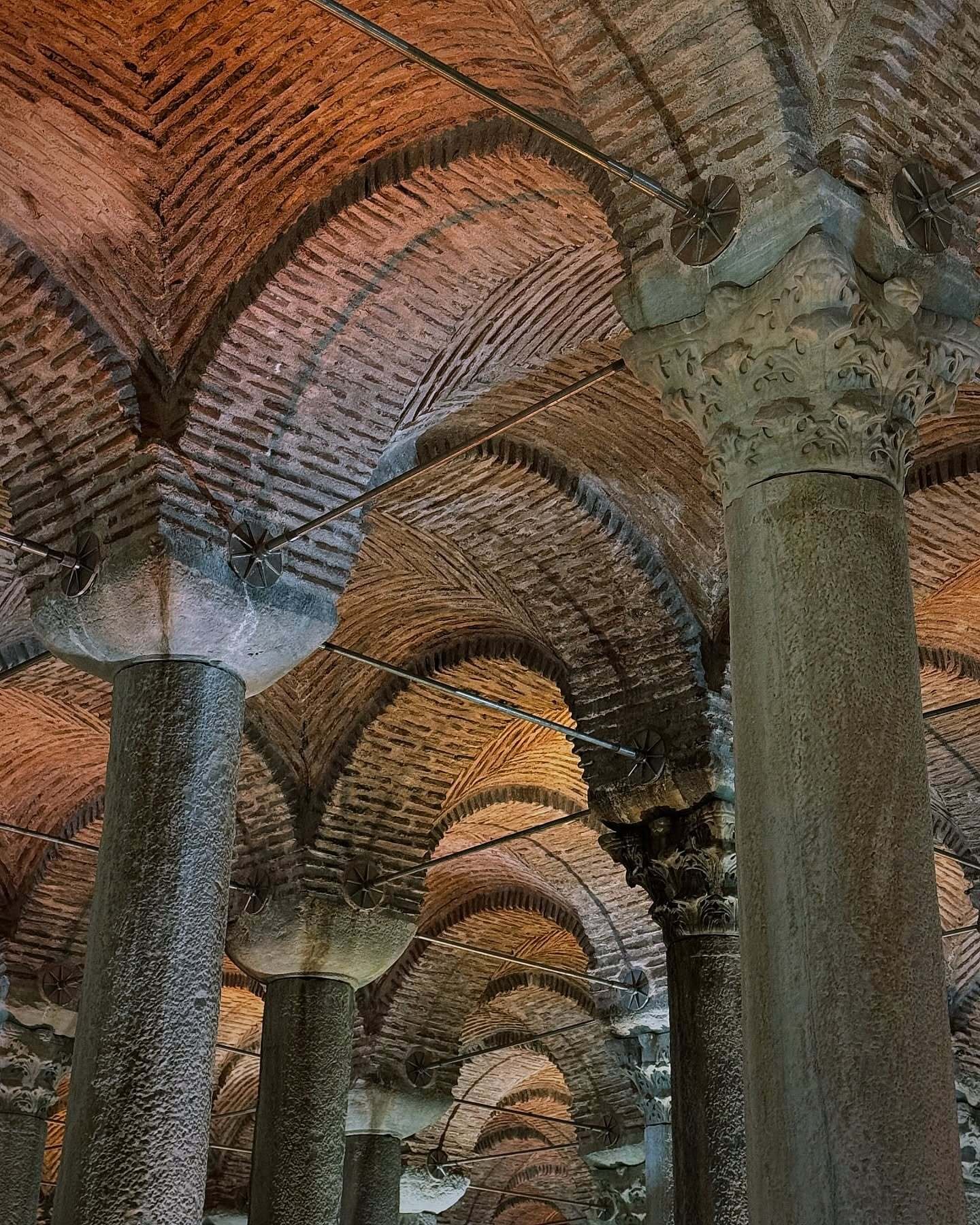 The columns rising in the water fascinate the visitors with their architecture as soon as they enter the cistern. The ceiling weight of the cistern was transferred to the columns by means of round cruciform vaults and arches. Most of the columns are understood to have been collected from older buildings and carved from the granite of various types of marble.