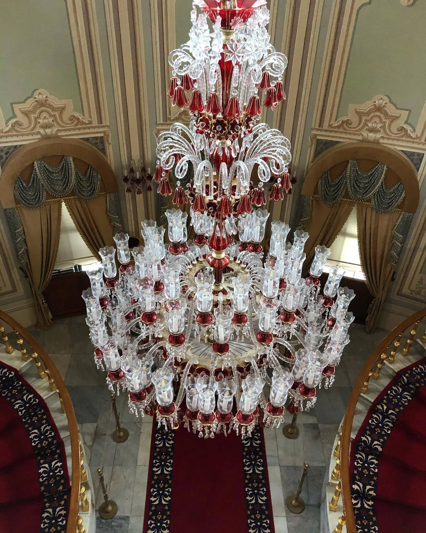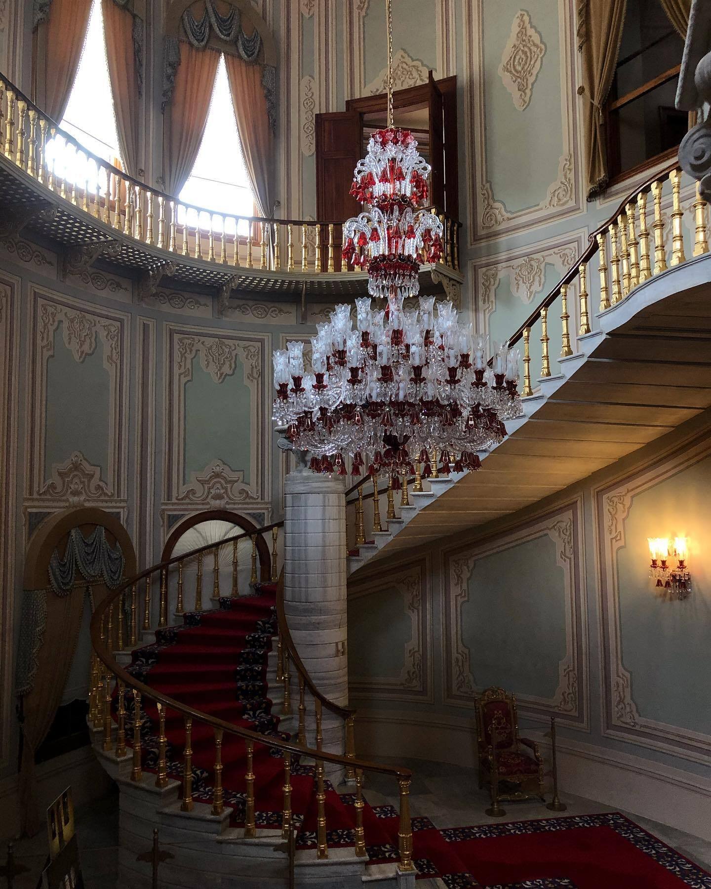 The front facade of the pavilion is designed in neoclassical style and has a two-story and symmetrical layout. In photographs from the reign of Sultan Abdulhamid II, it can be seen that the interior of the pavilion was enriched with gilded furniture, upholstery, and curtains made of Hereke fabrics, Baccarat vases and large crystal candlesticks. The interior is also decorated with very valuable colored porphyry.
