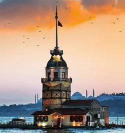 Моминската кула, примамливо бижу в Босфора, се превръща в завладяващ рай по време на залез. Докато златните лъчи на слънцето се отразяват в историческите му стени, кулата стои като символ на романтика и мистика. Блестящите води, заобикалящи кулата, създават ефирна обстановка, превръщайки залеза в Моминската кула в наистина омагьосващ момент, който съчетава история и красота в един кадър.