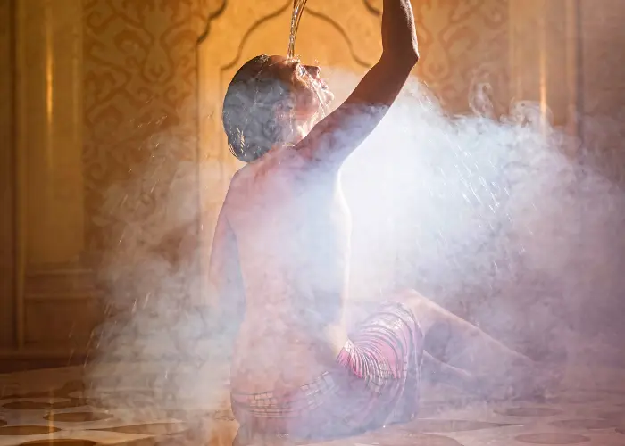A hammam is a gathering place where you can expel stress and daily toxins and emerge clean and tranquil. Because the pores open up, the steam helps to deeply cleanse the skin while also releasing and getting rid of bacteria and pollutants.