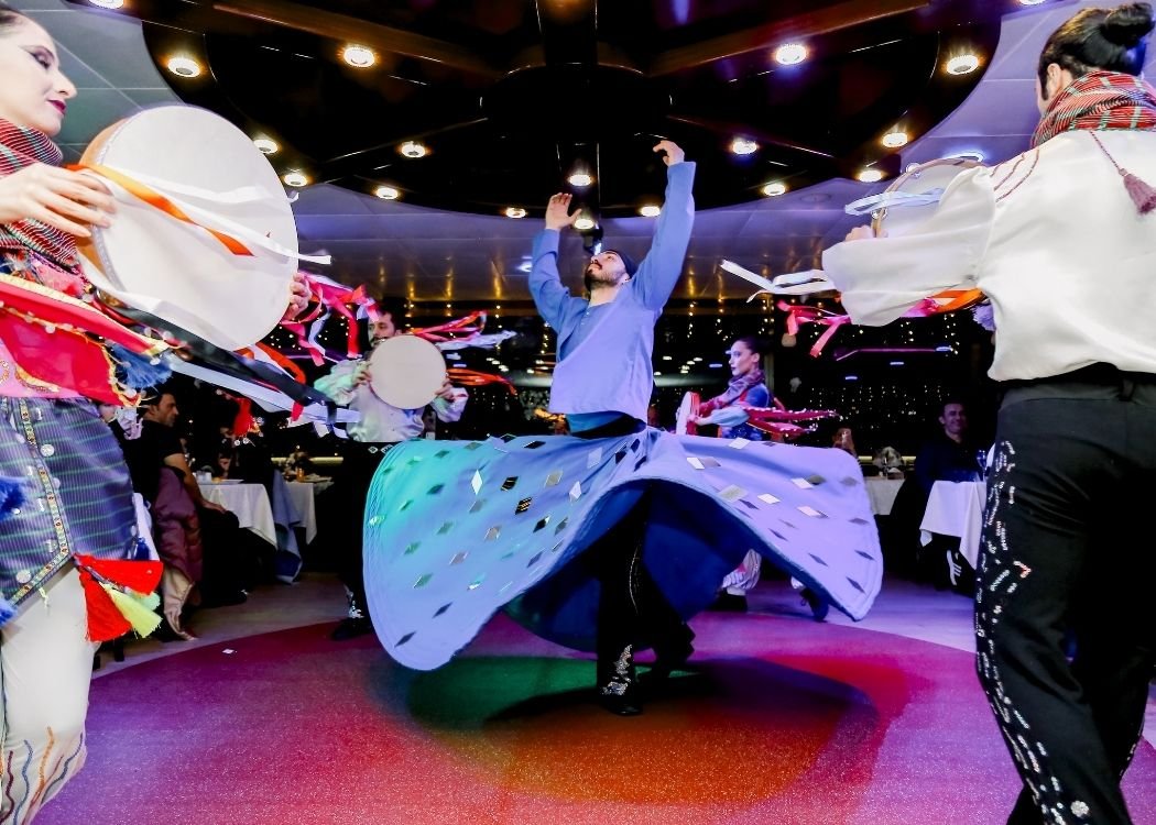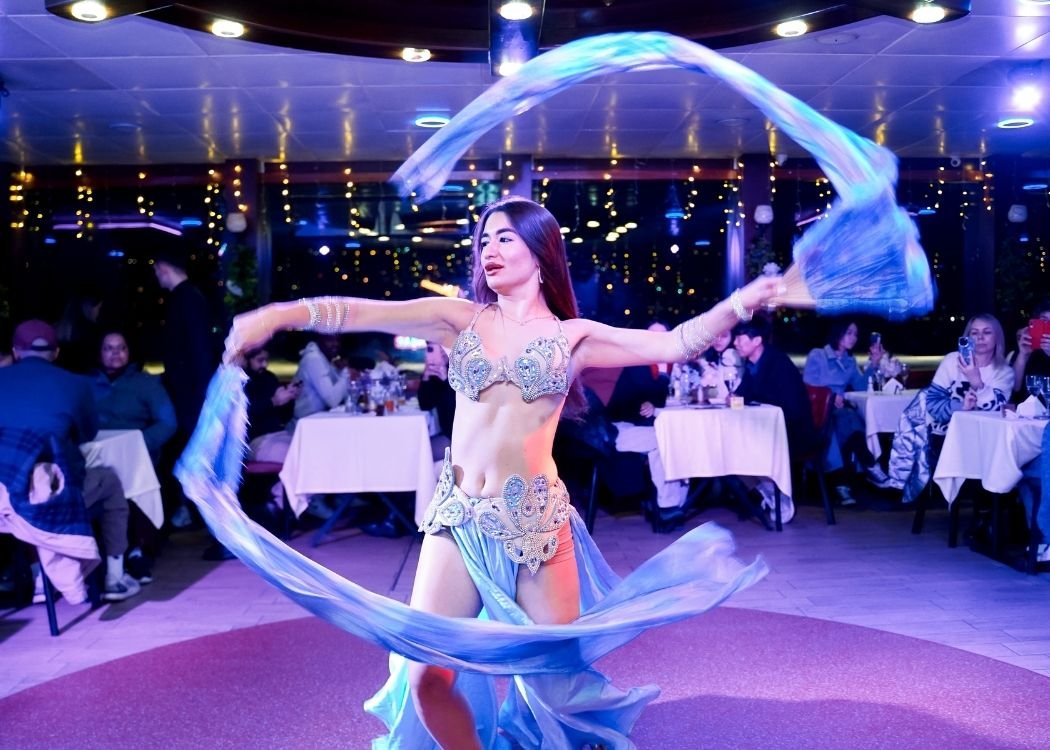While you enjoy your dinner, the stage comes to life with different performances. You can watch belly dancers, colorful Anatolian folk dances and energetic Latin or Flamenco style shows. Between the acts, live Turkish music plays and keeps the mood cheerful. The program is designed to be fun, light and easy to follow, even if it is your first time in Istanbul.