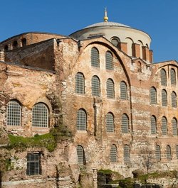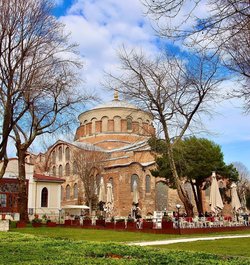 Die Hagia Irene, auch bekannt als Heiliger Frieden, war eine griechisch-orthodoxe Kirche, die auf Befehl von Kaiser Konstantin I. auf den Ruinen eines heidnischen Tempels als erste Kirche in Konstantinopel errichtet wurde. Sie diente bis zum 1. Jahrhundert als Kirche des Patriarchats. Basilika wurde gebaut. Durch Brände und Erdbeben wurde die Kirche stark beschädigt und mehrmals restauriert.
