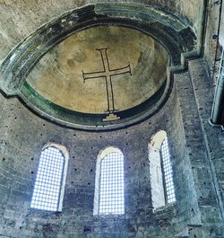 Die von Konstantin dem Großen erbaute Kirche wurde mit der Form einer "dreischiffigen Basilika" auf dem Boden und der Form eines griechischen Kreuzes auf der Spitze geschaffen.