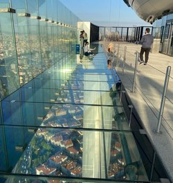 Discover the enchanting allure of Istanbul from a new vantage point at Emaar SkyView, where the skyline unfolds in all its glory from 300 meters above ground. Step onto the Skywalk, a thrilling 30-meter-wide glass walkway suspended above the city, offering an exhilarating experience akin to walking on air. As you traverse this modern marvel, immerse yourself in the breathtaking panorama below, encompassing iconic landmarks such as the Galata Bridge and Kadikoy, all while relishing the sensation of being suspended in the sky.