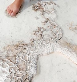 Visit Pamukkale's surreal travertine terraces, known as the Cotton Castle, and take off your shoes to walk on the warm, calcium-rich terraces.