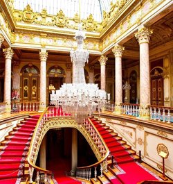 Le grand palais de Dolmabahçe était la dernière résidence et probablement la plus chère des sultans de l'Empire ottoman. Il a 285 chambres, 44 halls, 68 toilettes et six hammams (bains turcs) et est situé le long des belles eaux du Bosphore. De nombreux beaux meubles, œuvres d'art et autres trésors inestimables sont exposés, mais l'un des plus spectaculaires est le Lustre en cristal de 4.5 tonnes accroché dans la grande salle de cérémonie. C'est le plus grand lustre du monde !
