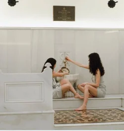 Features hammam use, full-body scrubbing, redbud scented moisturizing and firming clay mask, relaxing bubble wash ritual, head and neck massage, hair wash, and a moisturizing face mask.