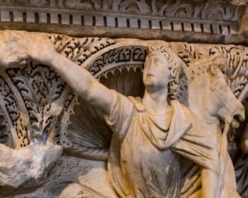 Orpheus, who appeared as a mythological character, became a school of its own over time and was associated with Jesus in Christian art. In the root of this, Orpheus, who tamed all the animals with various musical instruments he played during his lifetime, lost his lover with the bite of a snake. Due to the deep sadness he experienced, he was given the chance to go to the underworld and bring his lover. But Orpheus, who lost his lover again in this unfortunate experience, devotes himself to preaching only to men. Because of this dedication, Orpheus, who is associated with Jesus, appears in some works with descriptions similar to Jesus the Good Shepherd. Orpheus is depicted sitting and with an animal next to him, in the statue. The details of his dress are made with a few flush scratches rather than elaborate details. The depiction was completed with the face and hair drawing, which are widely seen in classical Roman art of the era.