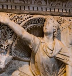 Orpheus, who appeared as a mythological character, became a school of its own over time and was associated with Jesus in Christian art. In the root of this, Orpheus, who tamed all the animals with various musical instruments he played during his lifetime, lost his lover with the bite of a snake. Due to the deep sadness he experienced, he was given the chance to go to the underworld and bring his lover. But Orpheus, who lost his lover again in this unfortunate experience, devotes himself to preaching only to men. Because of this dedication, Orpheus, who is associated with Jesus, appears in some works with descriptions similar to Jesus the Good Shepherd. Orpheus is depicted sitting and with an animal next to him, in the statue. The details of his dress are made with a few flush scratches rather than elaborate details. The depiction was completed with the face and hair drawing, which are widely seen in classical Roman art of the era.
