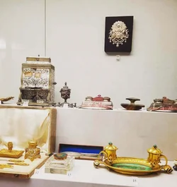 Stoviglie in argento: Puoi vedere le stoviglie placcate in argento e oro utilizzate per ospitare gli ospiti di alto rango dell'Impero Ottomano nel XIX secolo. Questi eleganti esempi riflettono le usanze a tavola dell'epoca e la varietà delle stoviglie.