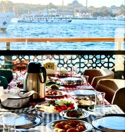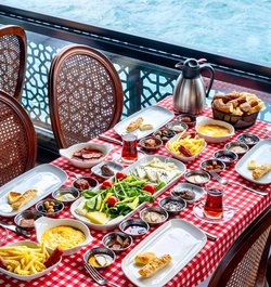 당신은 보스포러스 해협에서 잊지 못할 아침 식사를 경험하세요! 맛있는 음식과 터키식 차를 무제한으로 즐기고, 흥겨운 라이브 음악과 함께 웅장한 보스포러스 해협의 전망을 감상하세요! 완전히 새롭게 단장한 유서 깊은 페리에서 보스포러스 해협을 유람하며 느긋한 아침 식사를 즐기실 수 있습니다. 선상에서 멋진 사진도 찍는 것을 잊지 마세요.