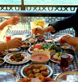 르 바퓌르 마지크 완전히 개조된 유서 깊은 페리는 현재 보스포러스 해협을 순항하는 동안 아침 및 저녁 메뉴에 안티오크 요리를 제공하는 고급 레스토랑이 되었습니다.