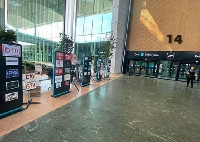 - Greeting at Door 14 on the Arrivals Terminal Floor of the Istanbul Grand Airport with a name board
