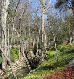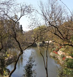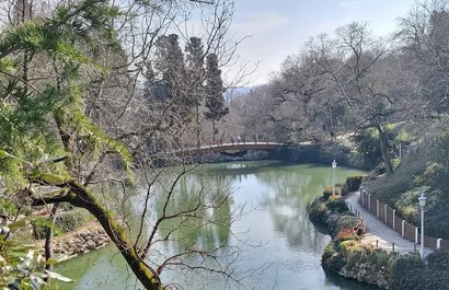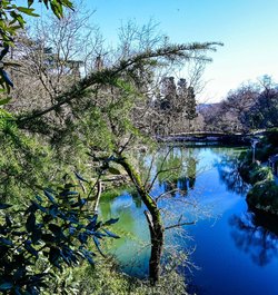 - Można spacerować po stawie w parku i podziwiać widoki z mostów.