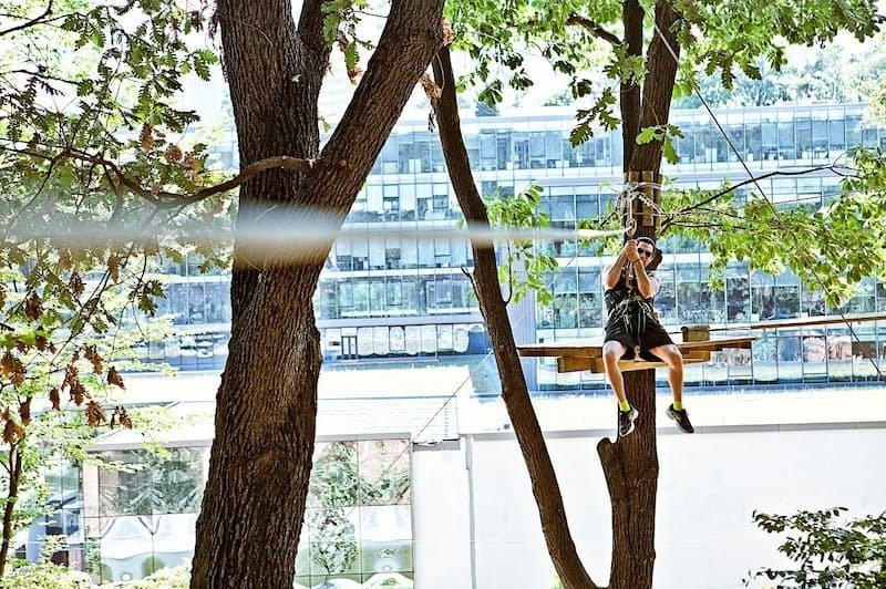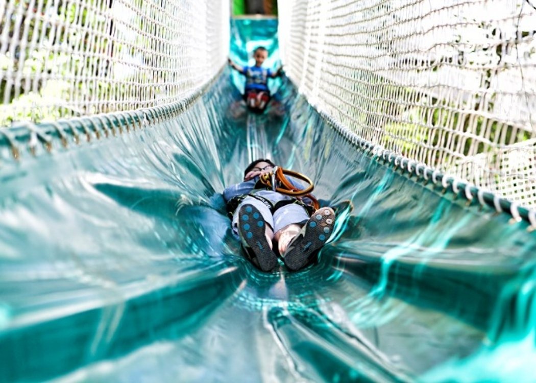 • Zipline (Age: Anyone Over 8+) You will experience the excitement at the summit as you pass through the trees with the zipline. This journey will start at a height of 15 meters and will last 180 meters above the entire park. Adults and children over 8 can use the parkour.